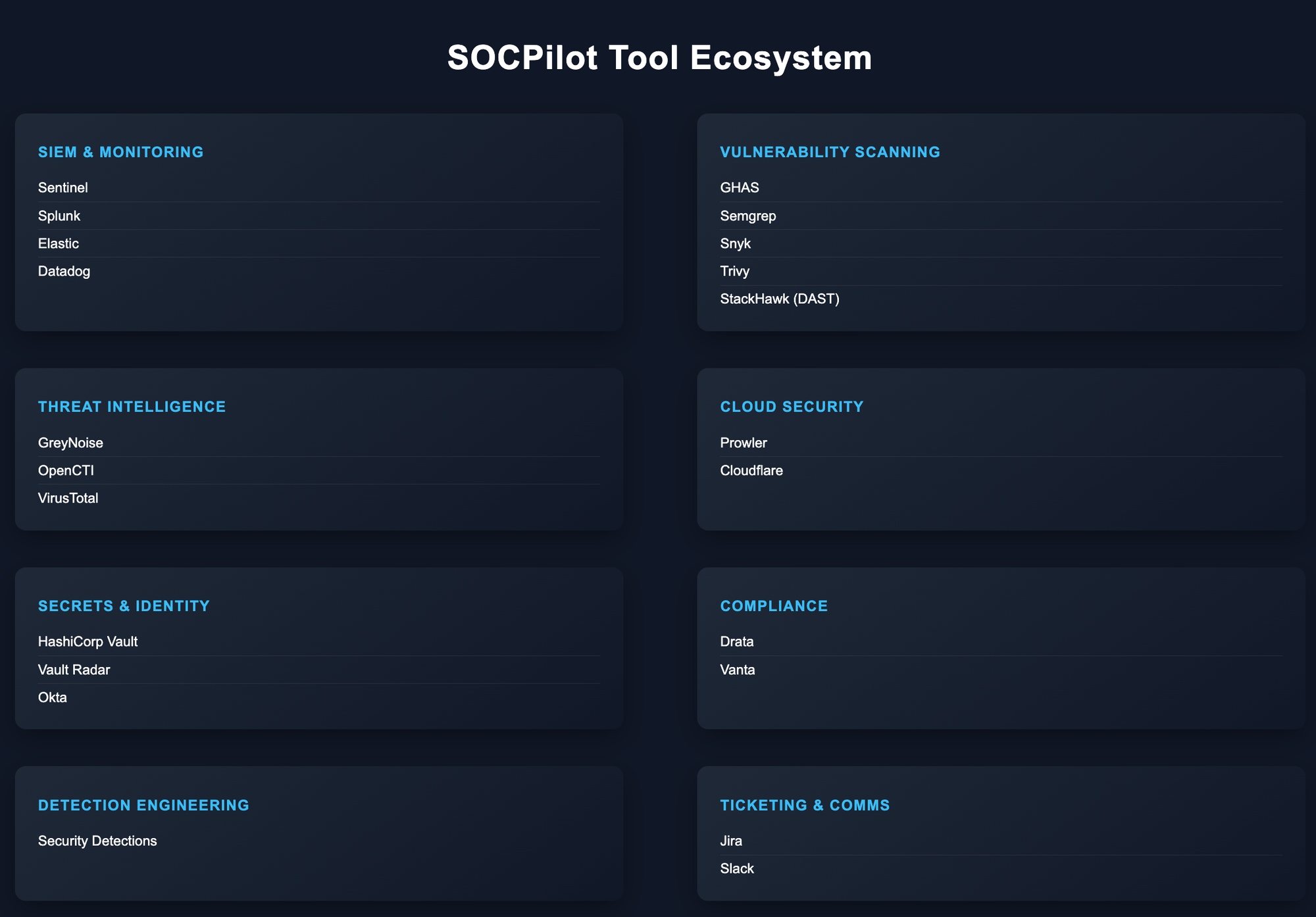| Team SOC | Solo + Sentinel/Splunk, Snyk, Trivy, Prowler, Vault, Jira, Slack | Varies |